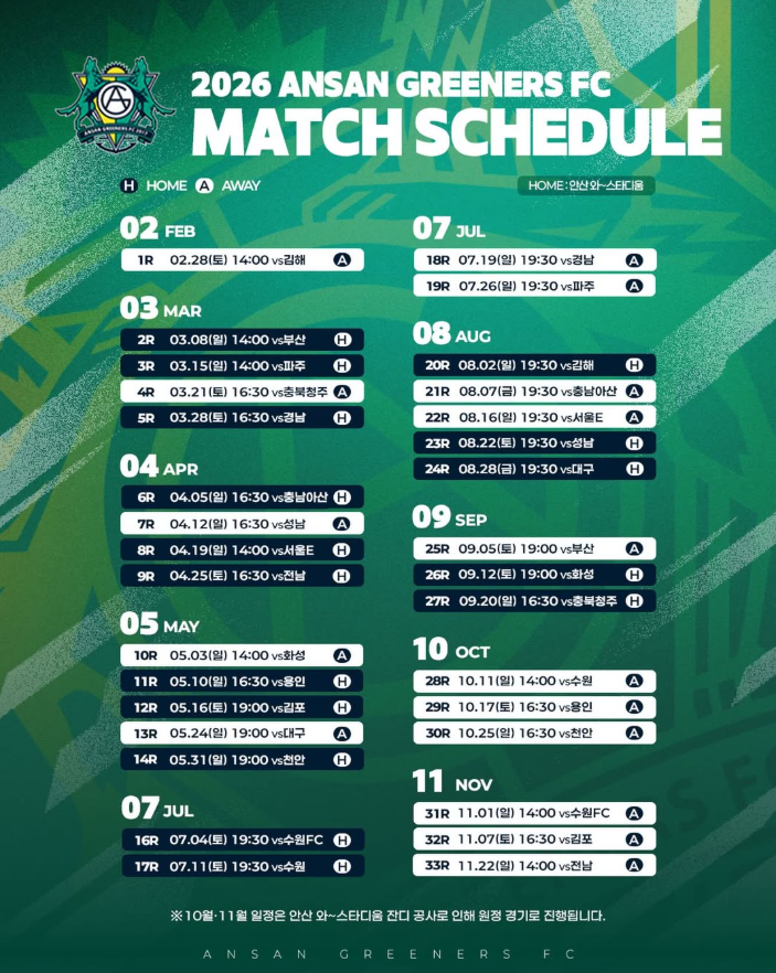 당사에서는 '2026 안산그리너스FC 홈경기 경호 안전 관리 용역